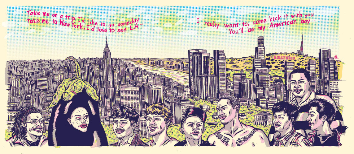 Miss Eggplant's American Boys, 2010, Digital & Silkscreen, 32x14inches