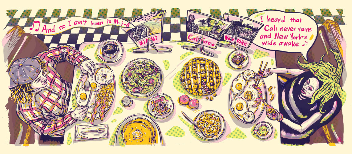 Miss Eggplant, who wears an oversized costume that any girl can fit in, went all around the U.S. with all kinds of American boys. Parody illustrations from a song by Estelle's 'American Boy.'
